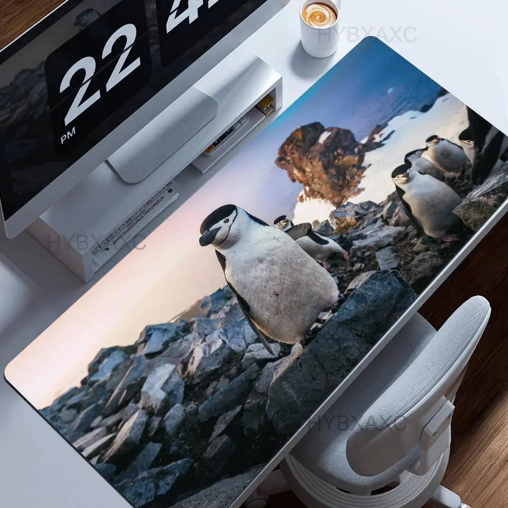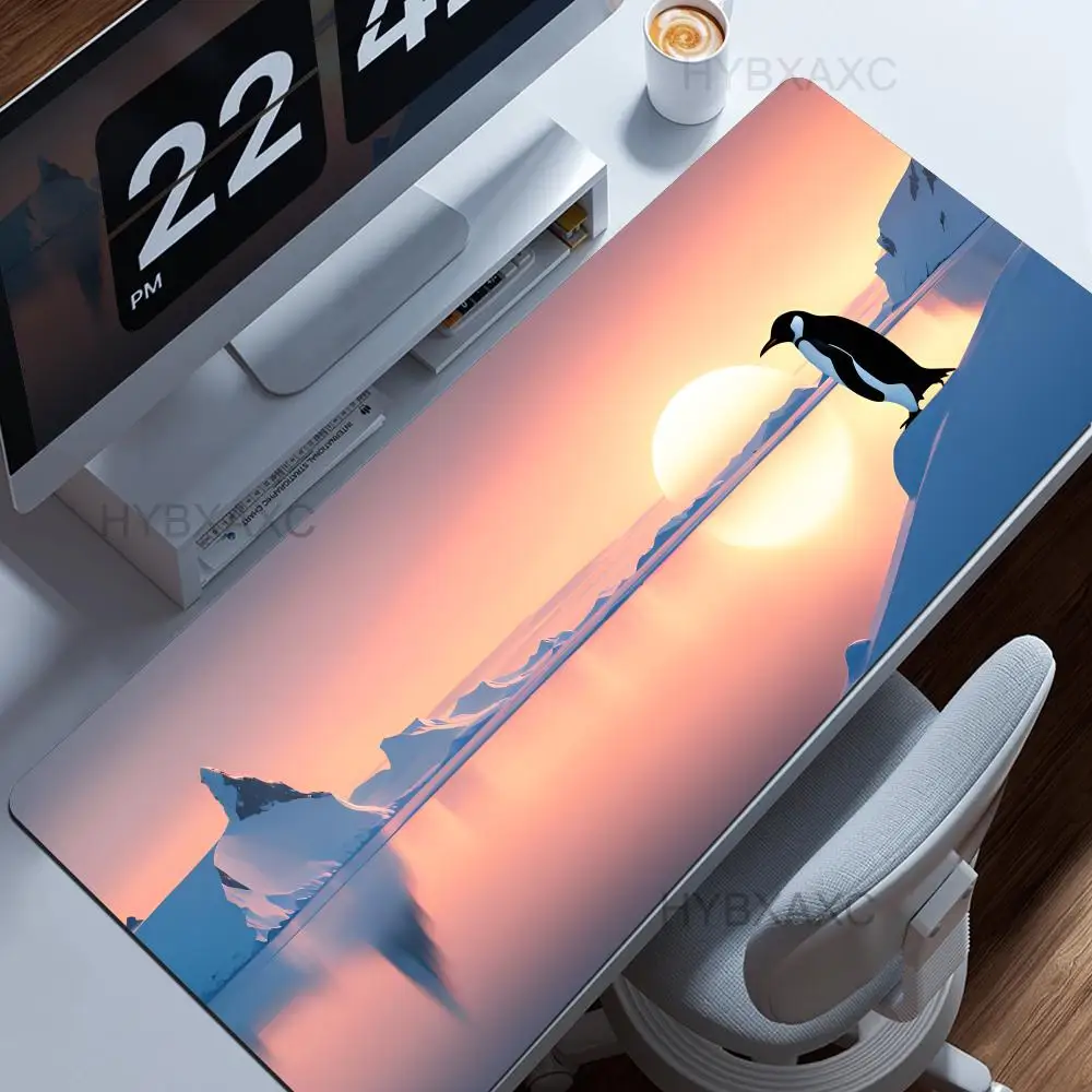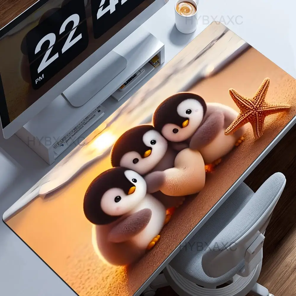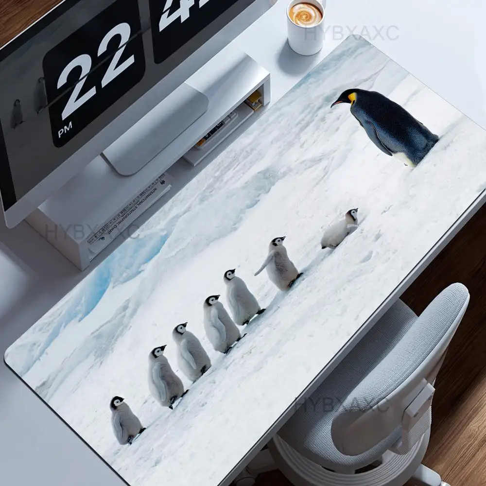 Little Kawaii Penguin Desk Mat, Magical Winter Wonderland Snow Land, Large Keyboard XL Mouse Pad, Cute Animals, Office Gift